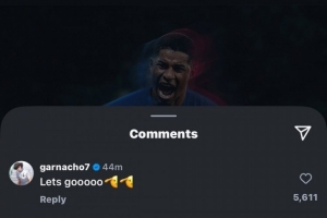 加纳乔在拉什福德官宣社媒下留言道:“Let’s go!(让我们走!)🫡🫡”并配上了“敬礼”表情。